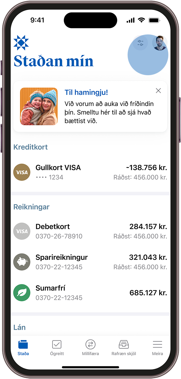 Í appinu ertu síðan með góða yfirsýn yfir fríðindi þín og þær þjónustur sem þú ert með hjá okkur ásamt því að sjá hvaða auknu fríðindi standa þér til boða.