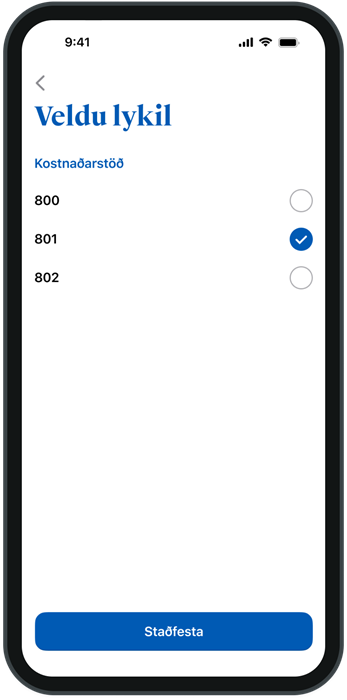 - Þegar valmöguleikar hafa verið skráðir fyrir ákveðinn færslulykil þá birtast þeir korthöfum í lista.