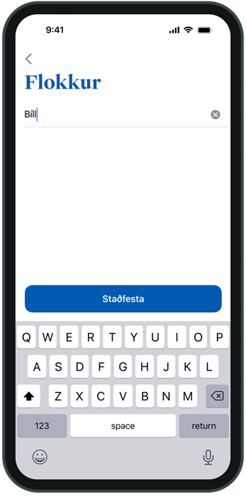 - Heiti mun birtast korthöfum sem valmöguleikar færslulykils