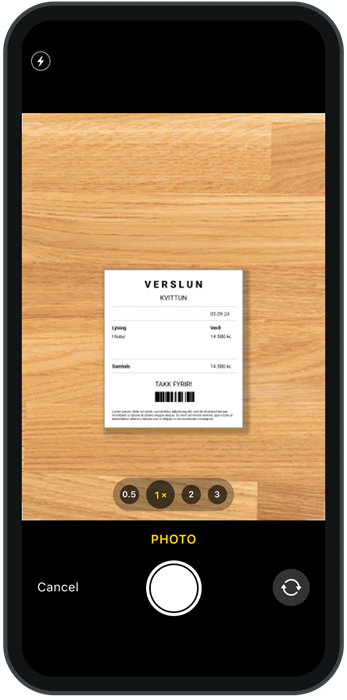 - Þegar valið er að taka mynd þá opnast myndavél símtækis.
