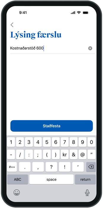 - Ef engir valmöguleikar eru skráðir þá er frjáls innsláttur korthafa í boði.