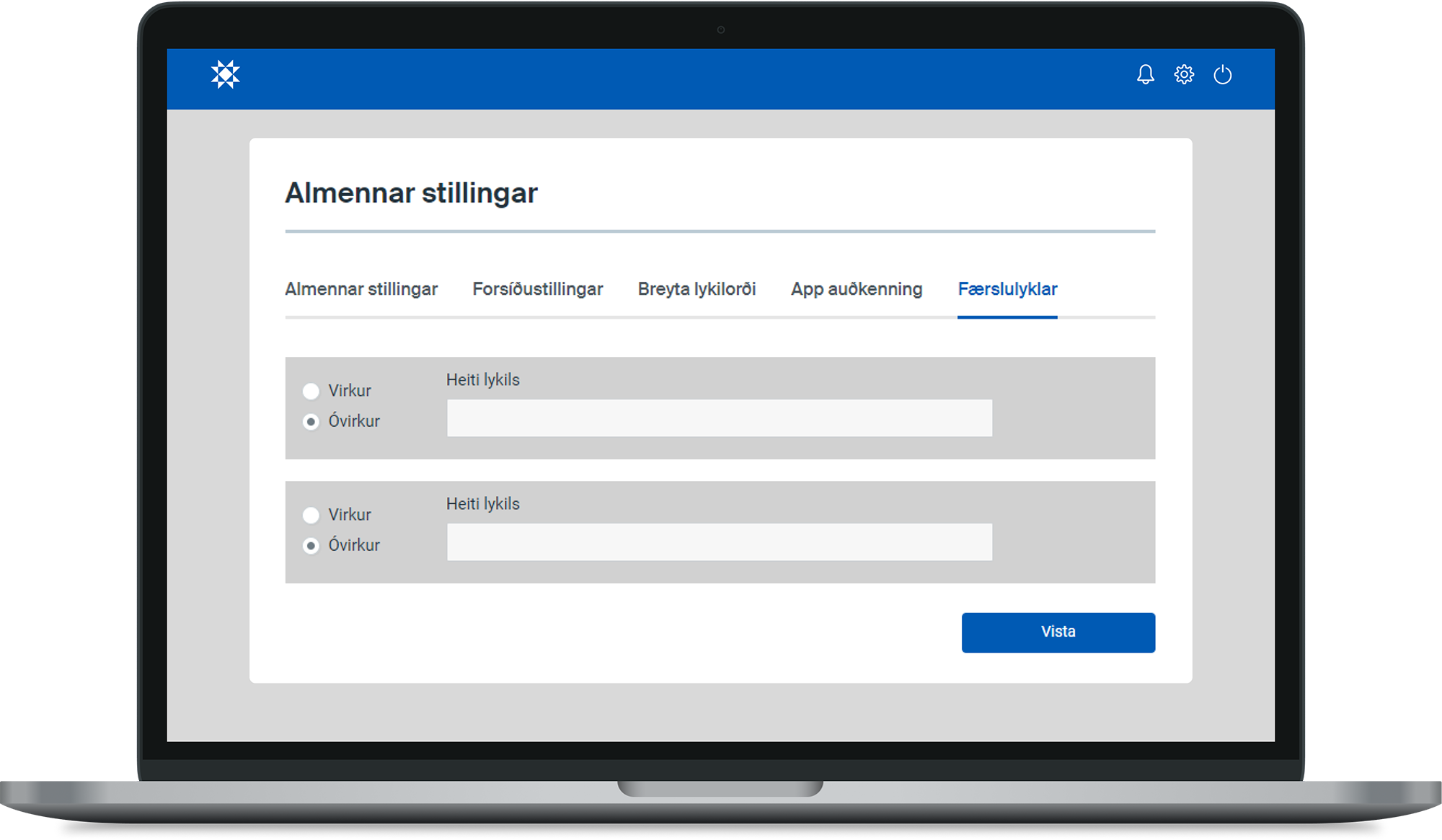 Mögulegt er að hafa einn eða tvo virka færslulykla og eru þeir virkjaðir með því að netbankanotendur fyrirtækja fara í Stillingar - Almennt - Færslulyklar, smella á Virkur og skrá Heiti lykils.
