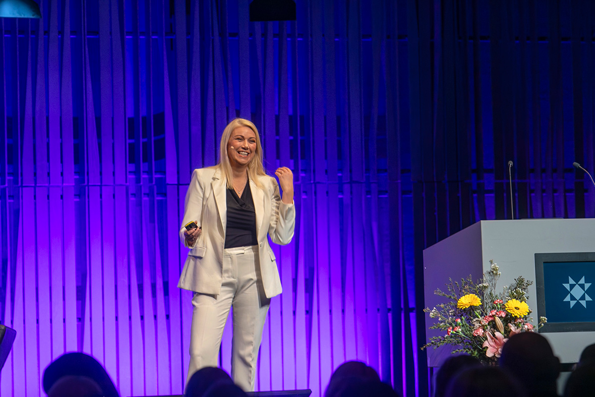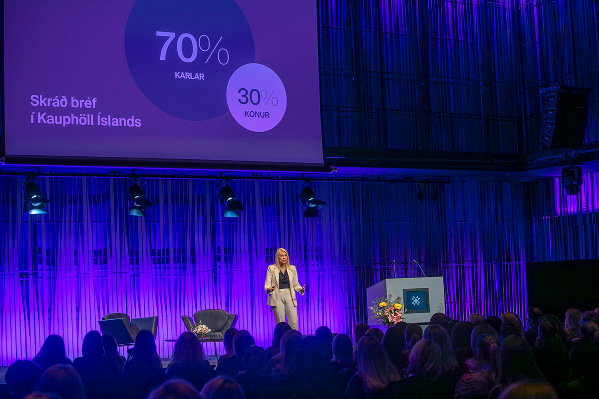 Iða Brá Benediktsdóttir, aðstoðarbankastjóri Arion banka, benti á að 4500 konur hafi þegar sótt fimmtíu Konur fjárfestum viðburði vítt og breitt um landið. Þeirri staðreynd fylgdi dynjandi lóftak.