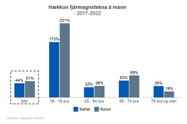 Öllu jákvæðara er að fjármagnstekjur kvenna, sérstaklega kvenna í yngri kantinum, eru að aukast samkvæmt gögnum Hagstofu Íslands. Þessi framvinda helst í hendur við þann aukna áhuga kvenna á fjárfestingum sem vart verður hjá Arion banka.