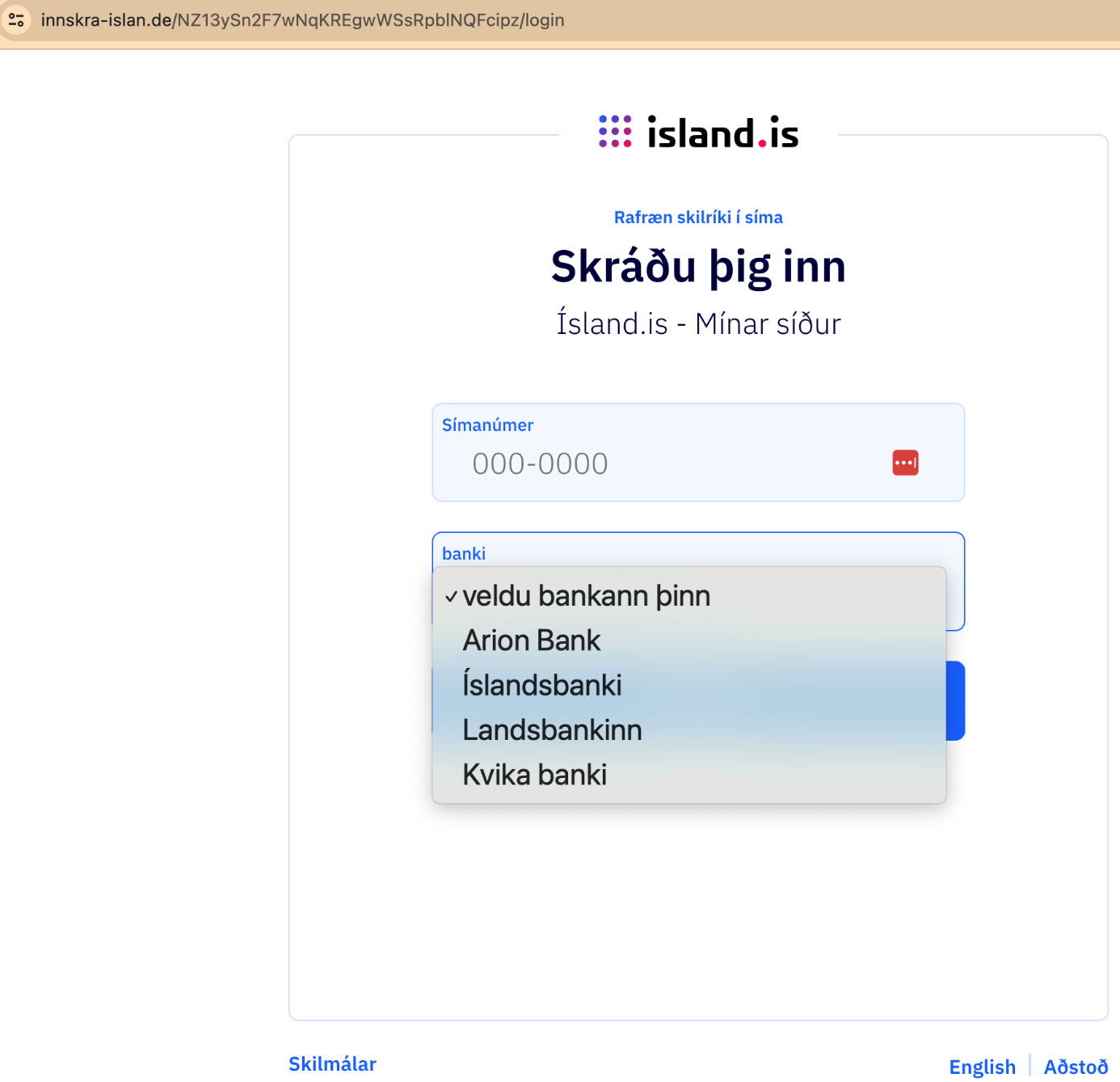 Ísland.is – við notum aldrei island.is til innskráningar í app eða netbanka
