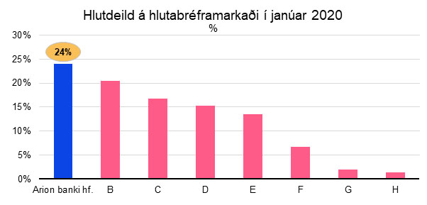 Höfuðstöðvar Arion banka, Borgartúni 19Arion banki hf. var með mestu hlutdeildina á hlutabréfamarkaði í janúarmánuði. Bankinn velti rúmum 34 milljörðum króna á hlutabréfamarkaði sem samsvarar 24% hlutdeild. Arion banki hefur verið stærstur á hlutabréfamarkaði undanfarin fjögur ár en veltan í janúar er mesta velta bankans á einum mánuði síðan vorið 2017.