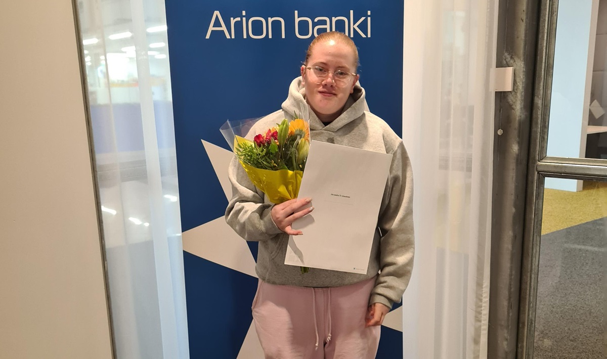 Allir þeir unglingar, sem lögðu laun sín inn á reikning hjá Arion í sumar, fóru svo sjálfkrafa í pott og áttu möguleika á að hljóta væna peningagjöf frá bankanum.