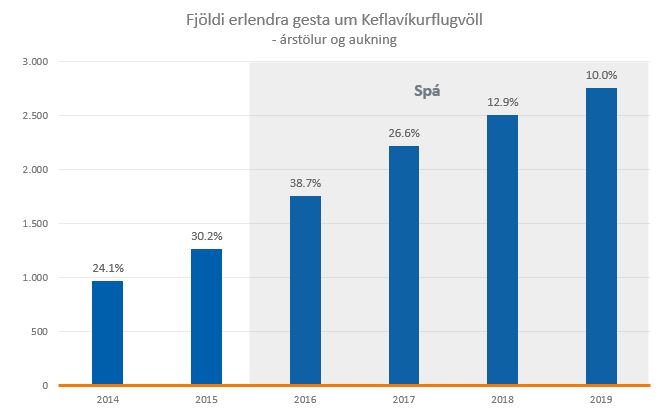 Greiningardeild Arion banka kynnti í morgun árlega ferðaþjónustuúttekt sína. Greiningardeildin spáir því að ferðamönnum fjölgi um tæp 39% í ár, um 27% á næsta ári en að svo hægi á vextinum. Árið 2019 áætlar deildin að erlendir ferðamenn verði 2,7 milljónir. Spánni fylgir mikil óvissa og getur flugframboð, gengi krónunnar, innviðir ferðaþjónustunnar og aðrir þættir haft mikil áhrif. Brýnt er að fjárfesta í innviðum og nauðsynlegt er að ná samstöðu um gjaldtöku í ferðaþjónustu.